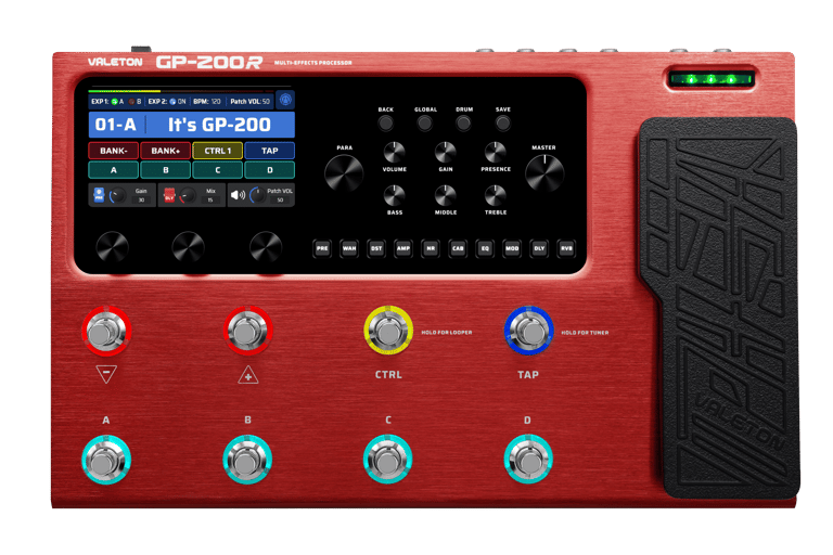 Tombol modul memungkinkan Anda untuk dengan cepat mengaktifkan, menonaktifkan, atau masuk ke modul efek yang diinginkan. Knob amp head dirancang untuk penyesuaian yang mudah dan intuitif, sementara knob cepat yang dapat dikonfigurasi menghadirkan fleksibilitas personalisasi pada setiap preset. Dengan 25 tombol dan knob yang masing-masing memiliki fungsi spesifik, GP-200X memberikan kontrol mendetail yang membuat Anda sepenuhnya menguasai performa.